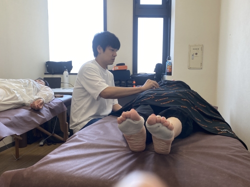 基本は手で触りますが必要に応じてテーピングしたり、置き鍼したり。