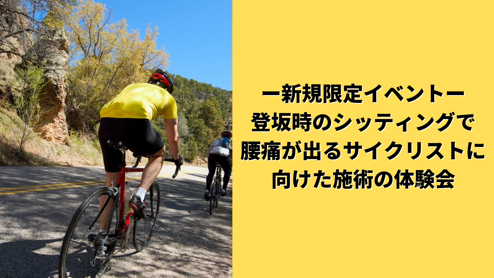 登坂時のシッティングで腰痛が出るサイクリストに向けた施術の体験会を開催します。